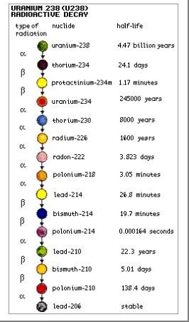 Decay chain of radioactive elements into lead.